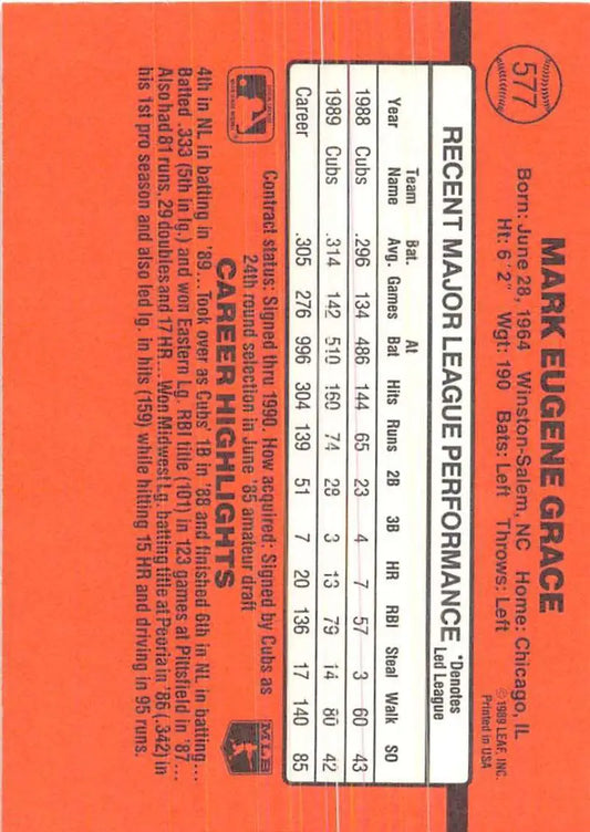 1990 Donruss #577 Mark Grace VG-EX Chicago Cubs Baseball Card