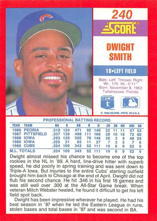 1990 Score #240 Dwight Smith NM-MT Chicago Cubs Baseball Card