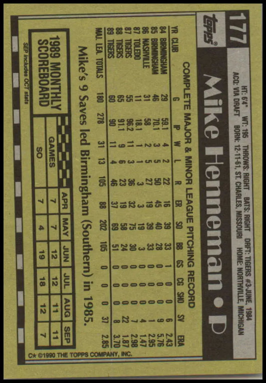 1990 Topps #177 Mike Henneman NM-MT Detroit Tigers Baseball Card