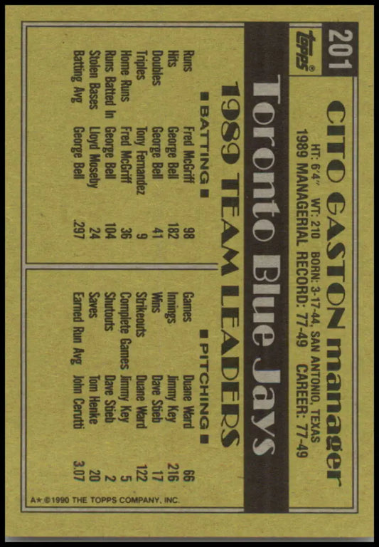 1990 Topps #201 Cito Gaston MG NM-MT Toronto Blue Jays Baseball Card