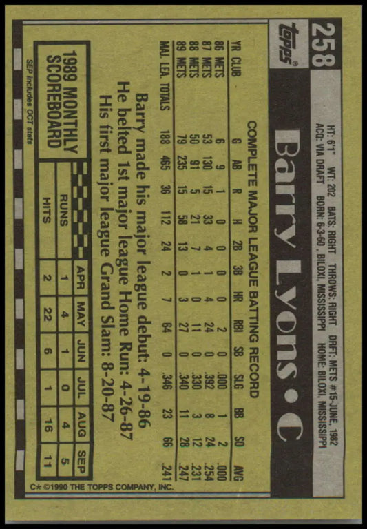 1990 Topps #258 Barry Lyons NM-MT New York Mets Baseball Card