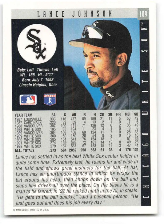 1993 Score #109 Lance Johnson NM-MT Chicago White Sox Baseball Card