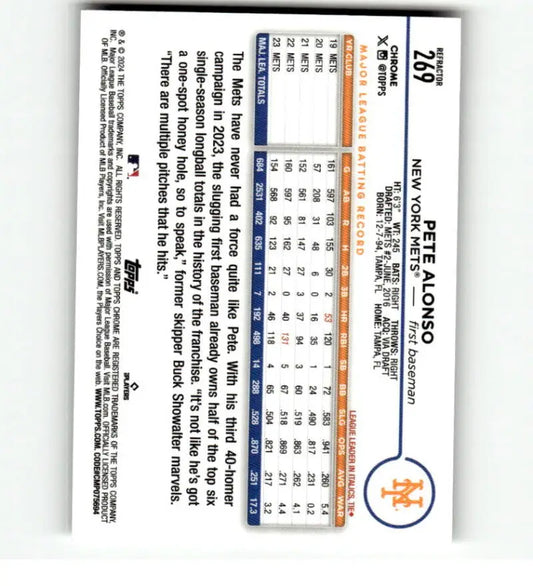 2024 Topps Chrome Refractor #269 Pete Alonso NM-MT New York Mets Baseball Card