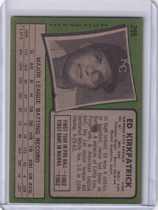 1971 Topps Baseball #299 Ed Kirkpatrick - Kansas City Royals