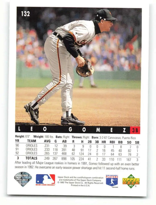 1993 Upper Deck #132 Leo Gomez VG Baltimore Orioles Baseball Card