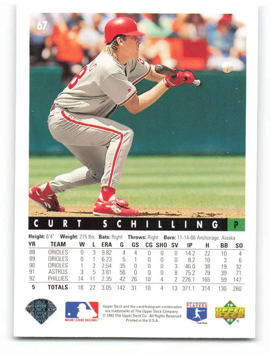 1993 Upper Deck #67 Curt Schilling VG Philadelphia Phillies Baseball Card