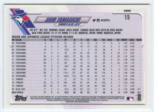 2021 Topps Chrome #15 Shun Yamaguchi NM-MT Toronto Blue Jays Baseball Card