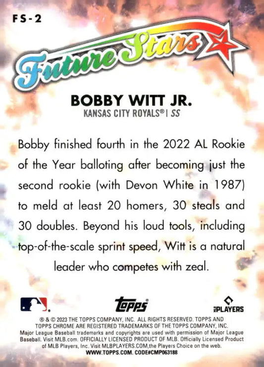 2023 Topps Chrome Future Stars Refractor #FS-2 Bobby Witt Jr. NM-MT Kansas City Royals Baseball Card