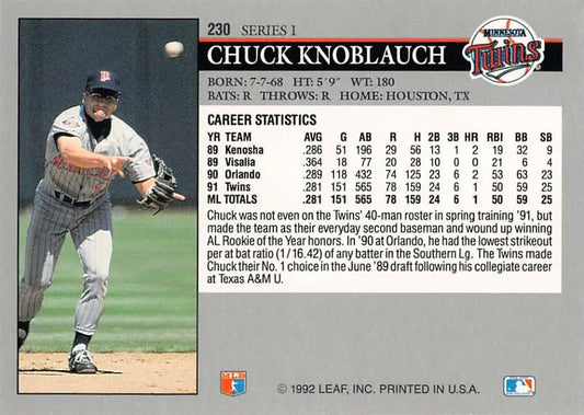 1992 Leaf #230 Chuck Knoblauch NM-MT Minnesota Twins Baseball Card