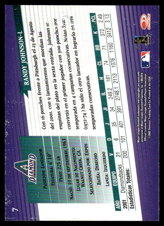 2002 Donruss Super Estrellas #7 Randy Johnson EX/NM Arizona Diamondbacks Baseball Card