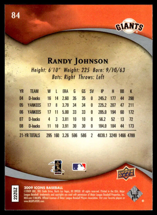 2009 Upper Deck Icons #84 Randy Johnson EX/NM San Francisco Giants Baseball Card