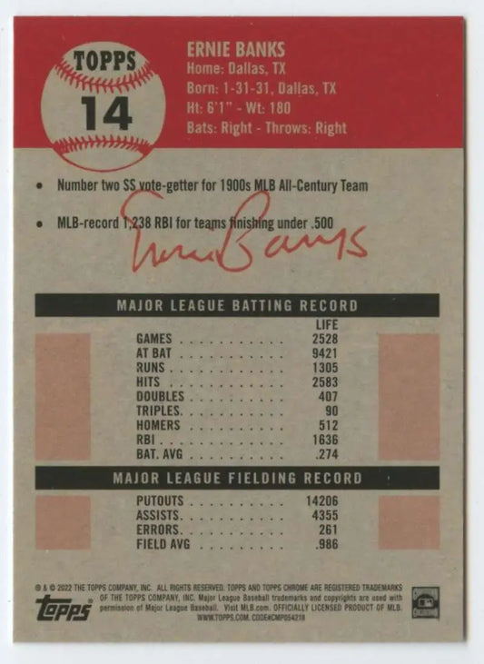 2022 Topps Chrome Platinum Anniversary #14 Ernie Banks NM-MT Chicago Cubs Baseball Card