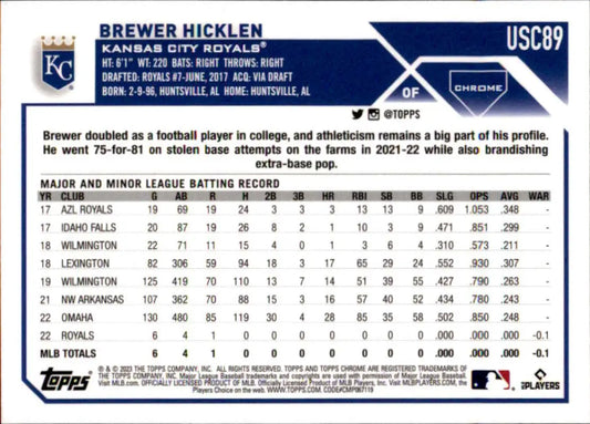 2023 Topps Chrome Update #USC89 Brewer Hicklen NM-MT RC Rookie Kansas City Royals Baseball Card