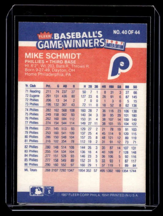 1987 Fleer Game Winners #40 Mike Schmidt Philadelphia Phillies NM-MT Baseball Card