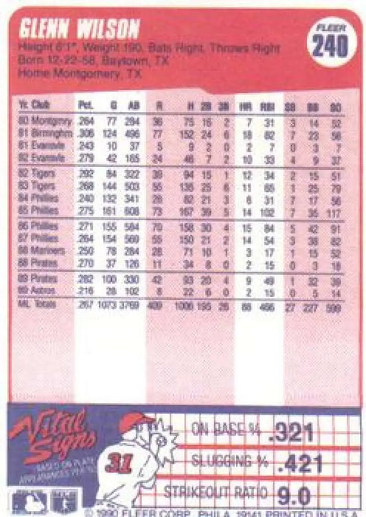 1990 Fleer #240 Glenn Wilson NM-MT Houston Astros Baseball Card