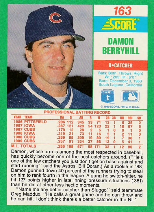 1990 Score #163 Damon Berryhill NM-MT Chicago Cubs Baseball Card