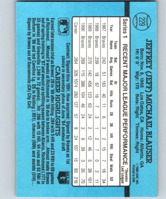 1991 Donruss #229 Jeff Blauser NM-MT Atlanta Braves Baseball Card