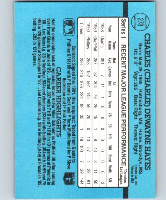 1991 Donruss #278 Charlie Hayes NM-MT Philadelphia Phillies Baseball Card