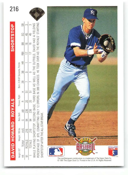 1992 Upper Deck #216 David Howard NM-MT Kansas City Royals Baseball Card