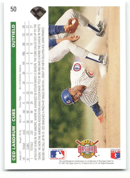 1992 Upper Deck #50 Ced Landrum NM-MT Chicago Cubs Baseball Card