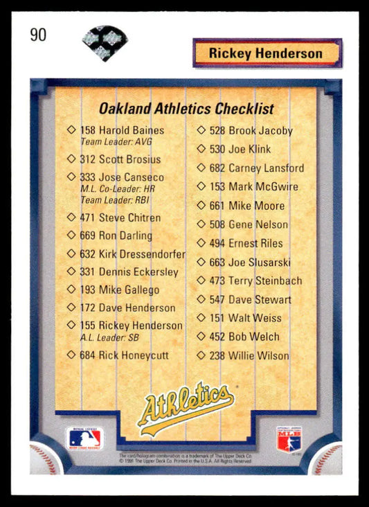 1992 Upper Deck #90 Rickey Henderson NM-MT Oakland Athletics Baseball Card