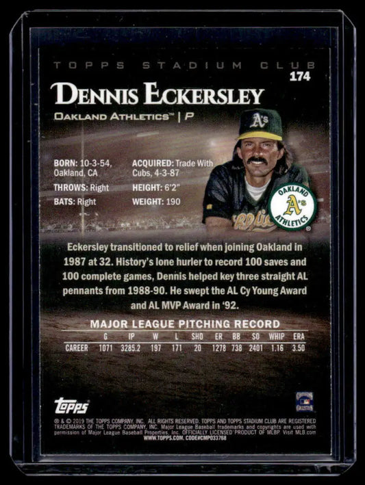 2019 Stadium Club #174 Dennis Eckersley NM-MT Oakland Athletics Baseball Card