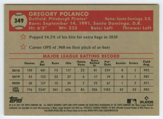 2021 Topps Chrome Platinum Anniversary #349 Gregory Polanco NM-MT Pittsburgh Pirates Baseball Card