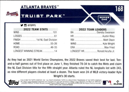 2023 Topps #168 Atlanta Braves NM-MT Team Card Baseball Card