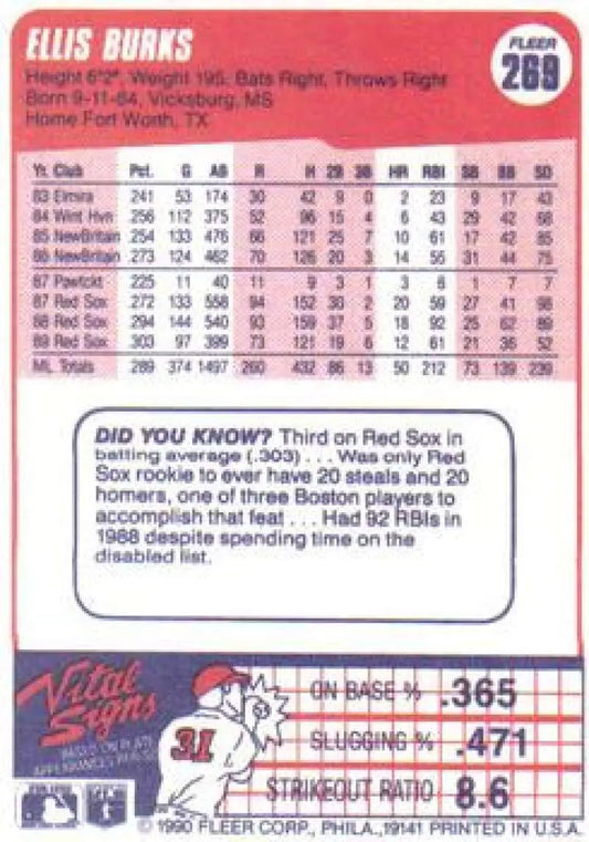 1990 Fleer #269 Ellis Burks NM-MT Boston Red Sox Baseball Card