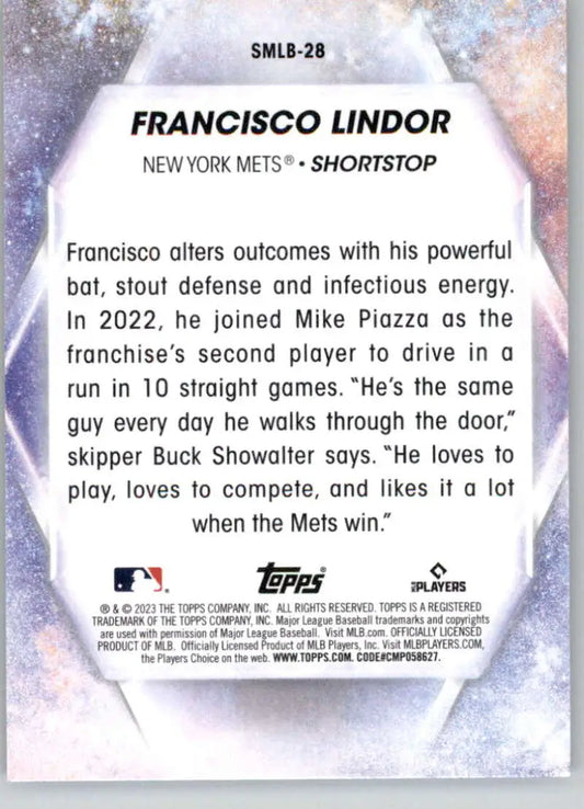 2023 Topps Stars of the MLB #SMLB-28 Francisco Lindor NM-MT New York Mets Baseball Card