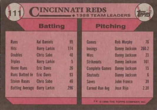 1989 Topps #111 Eric Davis Cincinnati Reds TL NM-MT Cincinnati Reds Baseball Card