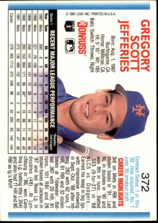 1992 Donruss #372 Gregg Jefferies NM-MT New York Mets Baseball Card
