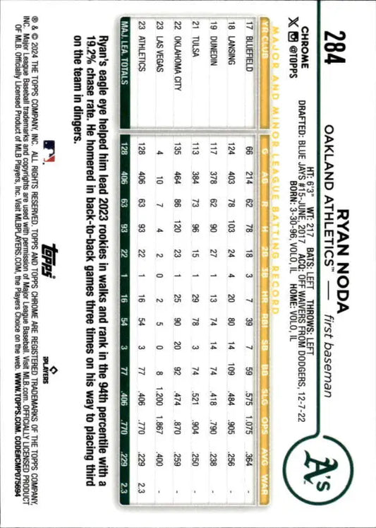 2024 Topps Chrome #284 Ryan Noda NM-MT Oakland Athletics Baseball Card