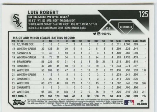 2023 Topps Chrome #125 Luis Robert NM-MT Chicago White Sox Baseball Card