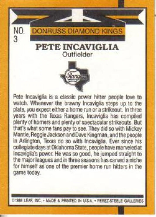1989 Donruss #3 Pete Incaviglia DK NM-MT Texas Rangers Baseball Card