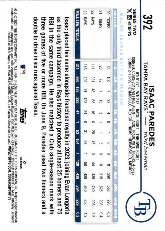2024 Topps #392 Isaac Paredes NM-MT Tampa Bay Rays Baseball Card