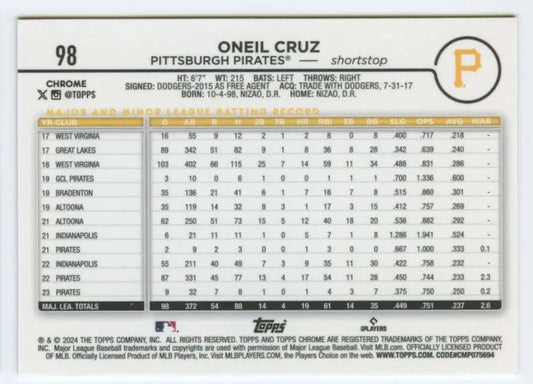 2024 Topps Chrome #98 Oneil Cruz NM-MT Pittsburgh Pirates Baseball Card