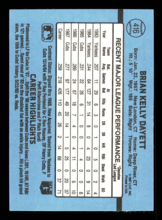 1988 Donruss #416 Brian Dayett EX Chicago Cubs Baseball Card