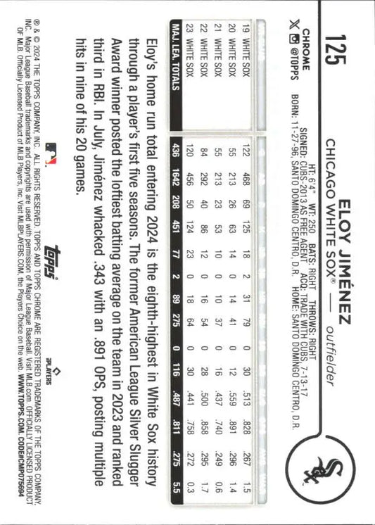 2024 Topps Chrome #125 Eloy Jimenez NM-MT Chicago White Sox Baseball Card