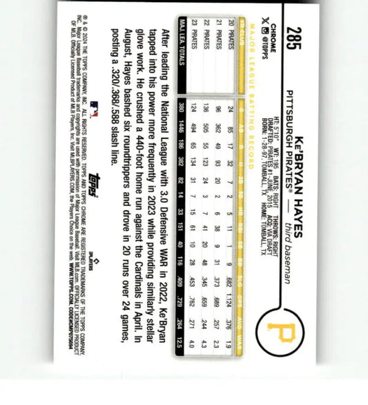 2024 Topps Chrome X-Fractor #285 Ke'Bryan Hayes NM-MT Pittsburgh Pirates Baseball Card