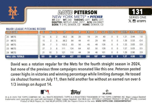 2025 Topps #131 David Peterson NM-MT New York Mets Baseball Card