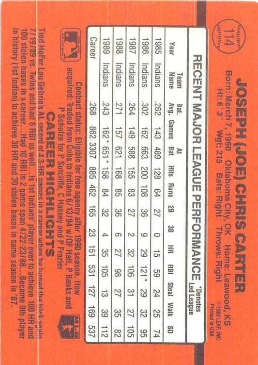 1990 Donruss #114 Joe Carter VG-EX Cleveland Indians Baseball Card