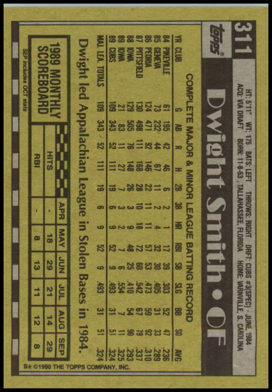 1990 Topps #311 Dwight Smith NM-MT Chicago Cubs Baseball Card