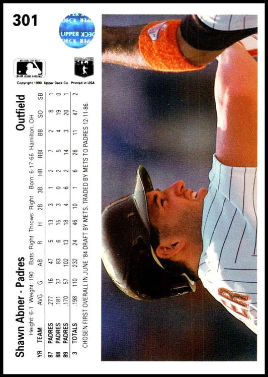 1990 Upper Deck #301 Shawn Abner NM-MT San Diego Padres Baseball Card