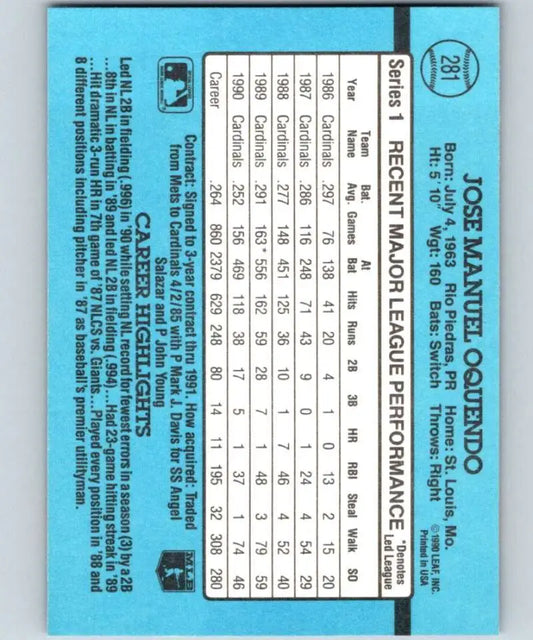 1991 Donruss #281 Jose Oquendo NM-MT St. Louis Cardinals Baseball Card