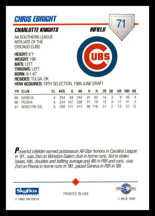 1992 Skybox AA #71 Chris Ebright Charlotte Knights NM-MT Baseball Card