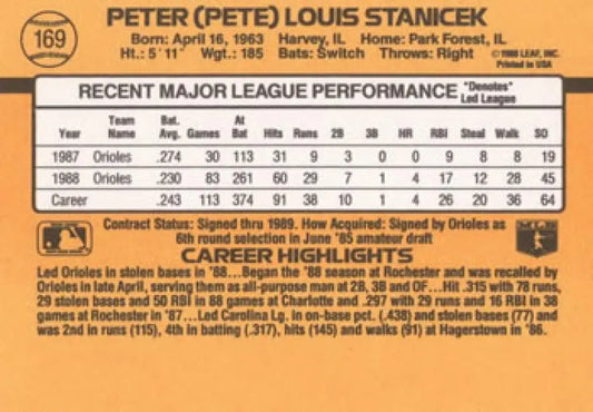 1989 Donruss #169 Pete Stanicek NM-MT Baltimore Orioles Baseball Card