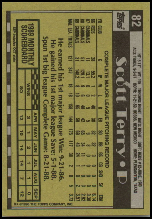 1990 Topps #82 Scott Terry NM-MT St. Louis Cardinals Baseball Card