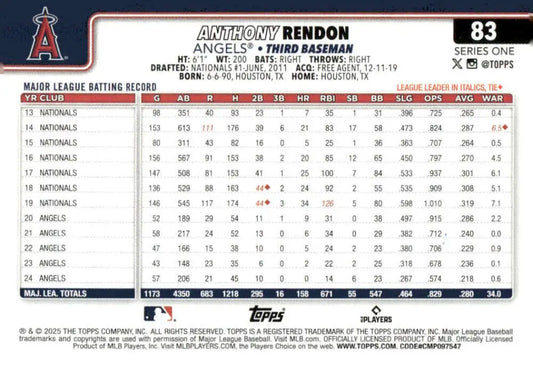 2025 Topps #83 Anthony Rendon NM-MT Los Angeles Angels Baseball Card