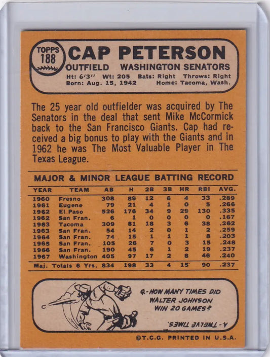 1968 Topps Baseball #188 Cap Peterson - Washington Senators